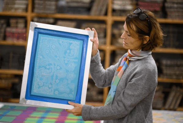Plongez au cœur du dernier atelier français d’impression au cadre sur soie, un savoir-faire rare et précieux préservé par la Maison Brochier Soieries.